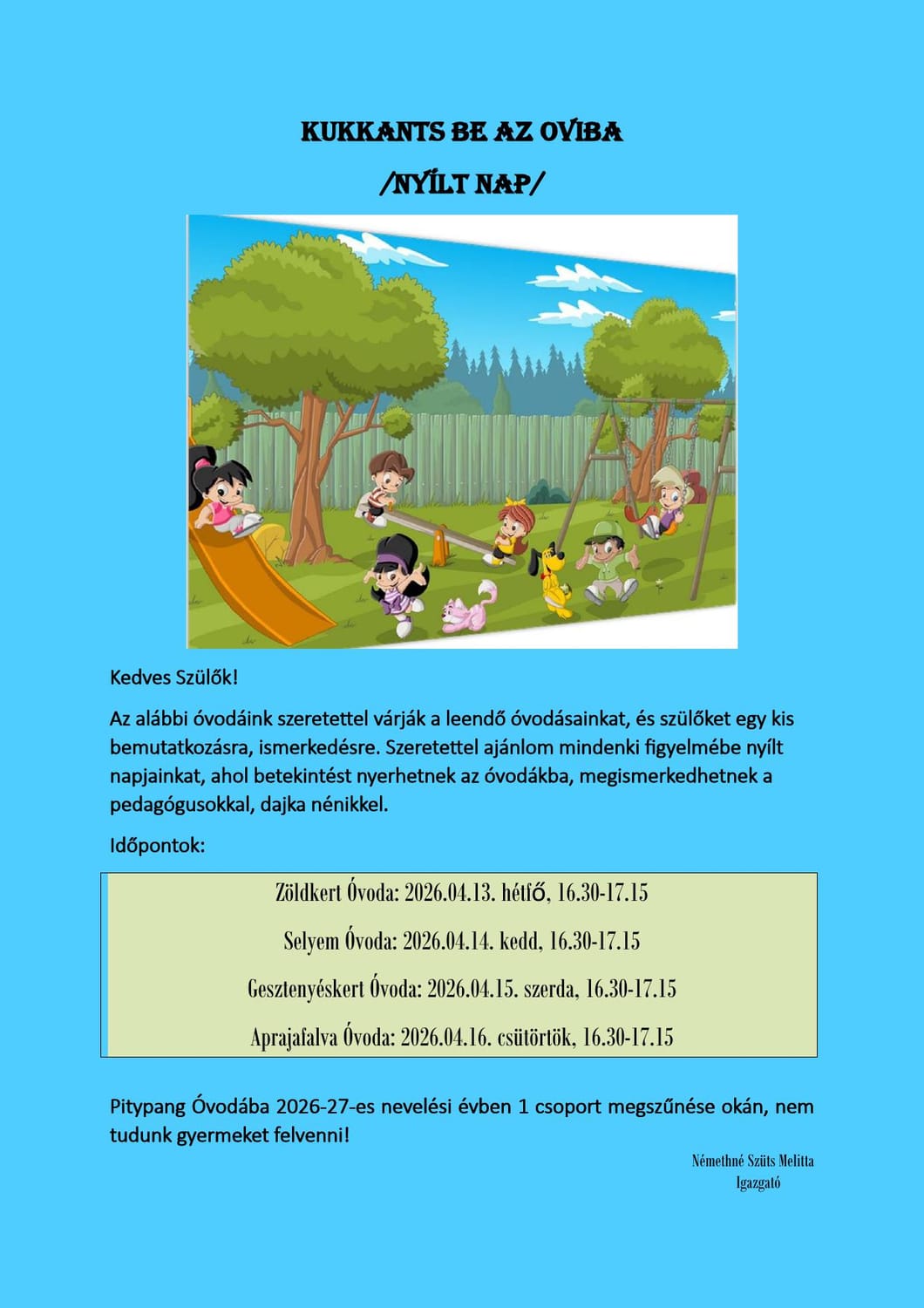 Igazgató: Némethné Szüts Melitta